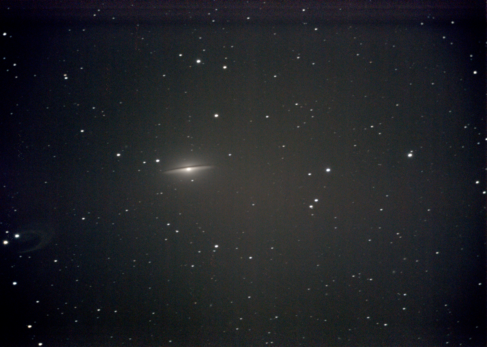 Das Bild entspricht fast dem visuellen Eindruck am Teleskop. Der Staubstreifen entlang der Scheibe war deutlich zu erkennen. M104 scheint keinem bestimmten Galaxienhaufen zugeordnet werden zu können. Das Spektrum im Zentrum zeigt Linien von schwach ionisiertem Gas. Galaxien mit dieser Eigenschaft nennt man auch LINER-Galaxien. Es wird vermutet, dass das sich im Zentrum befindliche Schwarzes Loch für die Strahlung verantwortlich ist.